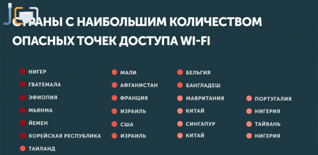По статистике, Россия по этому показателю входит в список благополучных государств, так как обладает относительно невысокой долей опасных точек общественного доступа к Сети — 18%.